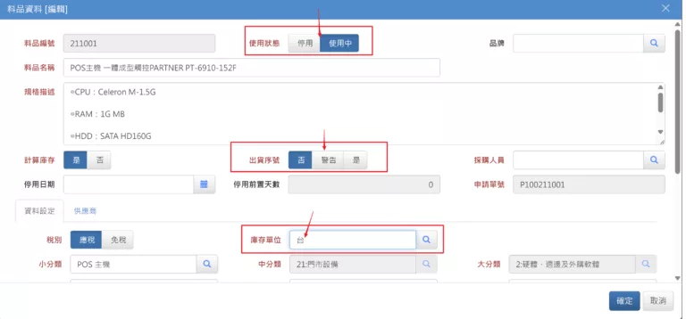 - 稅別:該商品是否應稅※有開發票的店家要特別注意