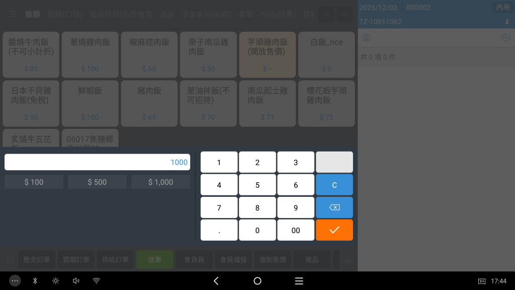 步驟1:在收銀頁面下方<功能鍵>點選<儲值>