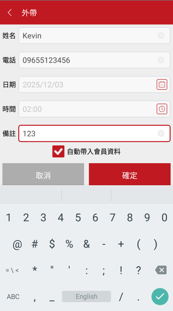 店家可以依據消費者的用餐方式來記錄訂單的類型: